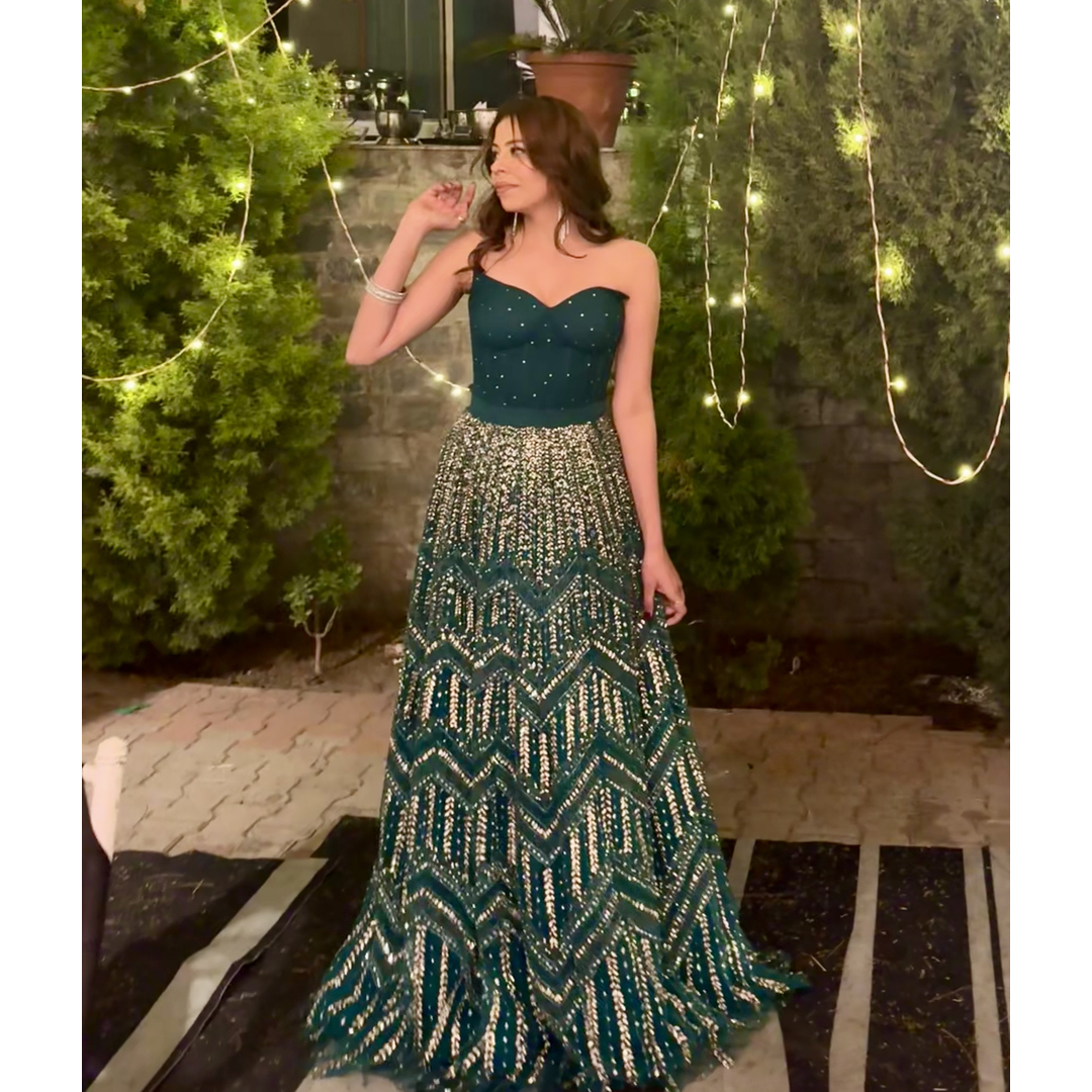 Make a bold statement with our Lycra Evening Gown, designed to exude confidence and grace. Crafted from luxurious Lycra, this gown offers a sleek, figure-enhancing fit, while the intricate wire work detailing adds a touch of sophistication. The timeless black hue makes it a perfect choice for glamorous occasions.