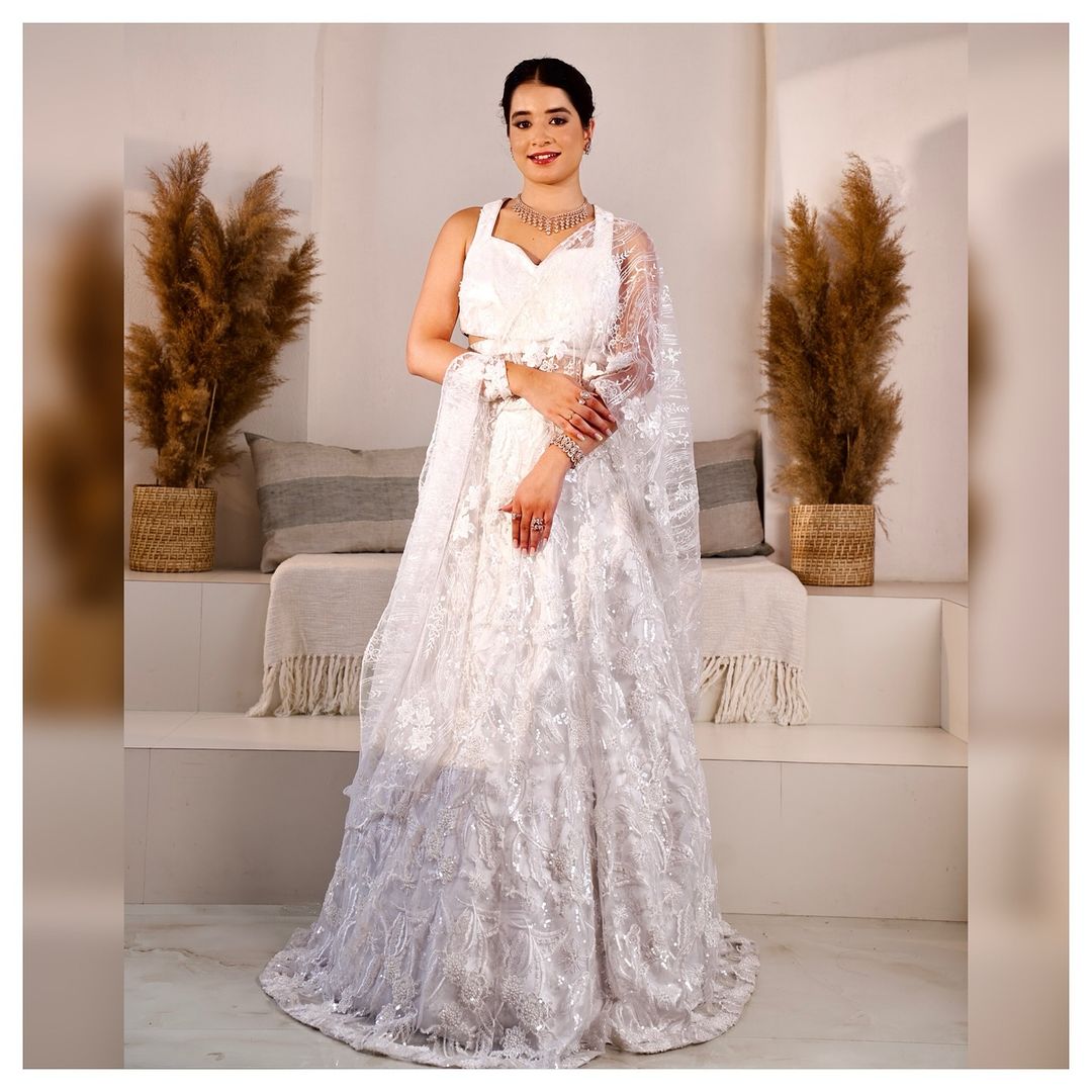 2. Flowy Hard Net Lehenga – A structured yet graceful silhouette.
