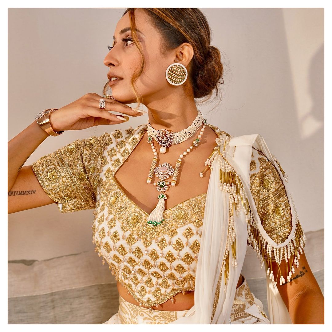 1. Heavy Hand-Embroidered Blouse – Intricate craftsmanship for a regal appeal.